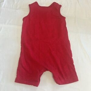 Adorable red kids one piece romper featuring a playful 'home' design. Perfect for everyday wear.