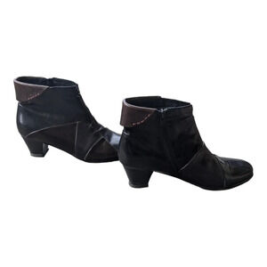 Canal Grande Leather Ankle Boots Booties Black Brown Patchwork Embroidery 38