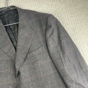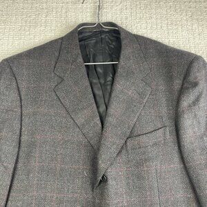 Canali Blazer Mens 52R Black / Red Plaid Check Wool Harry Rosen Italy Made