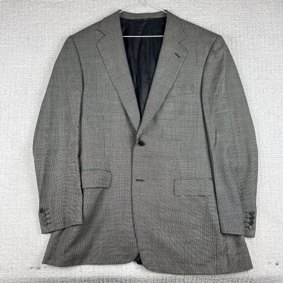 Canali Italy Blue Label Super 130 White / Black Abstract AOP Two Button Suit 54L