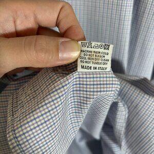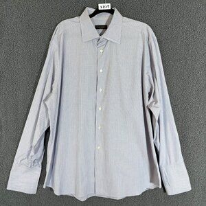 Canali Italy Made Check French Cuff Button Up Shirt - Men's Size 47/18.5 - Blue