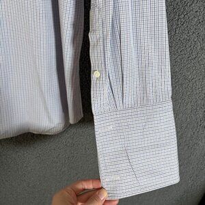 Canali Italy Made Check French Cuff Button Up Shirt - Men's Size 47/18.5 - Blue White