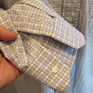 Canali Men's Shirt Light Blue Checks Cotton L 16 1/2-42 Made in Italy Very Nice