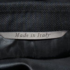 Image 6 shoes close up of the fabric demonstrating the subtle blue lines woven in the fabric.