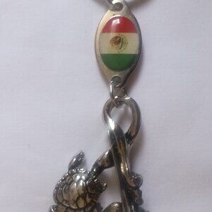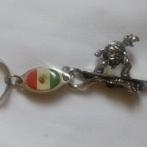 Cancun Mexico Ninja Turtle on Skate Board Keychain Bag Charm Silver Accent Rare