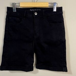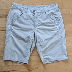 Ladies shorts waist size 31'', the material is 100% cotton. There is a front zipper and button closure, and pockets at the sides. The length of the shorts is 20" and the width of the leg at the bottom is 14". This is a vintage item hardly worn.