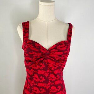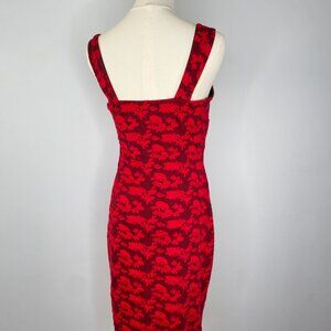 ⋆ The dress features a stunning deep burgundy and cherry red color palette, adorned with an all-over floral pattern that enhances its vintage-inspired charm. The figure-hugging silhouette is designed to flatter, with rouching at the chest adding texture and accentuating the bust for a classic sultry pinup look. Made from a stretchy material, this dress ensures both comfort and a perfect fit. Ideal for creating a bold, retro vibe, this piece is perfect for special occasions or nights out.