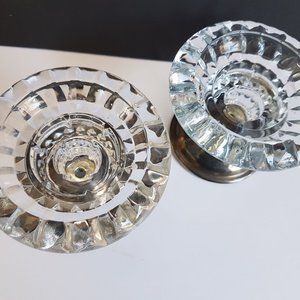 Candle Holders Silver Plate on Steel with Glass Set Vintage