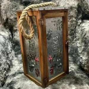 Candle Lantern Brown wood Lantern - Hanging Indoor or Outdoor Wall Lantern