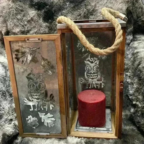 Candle Lantern Brown wood Lantern - Hanging Indoor or Outdoor Wall Lantern