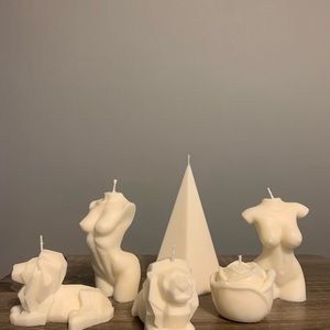 Handmade candles ! There’s different colours to choose from! And different shapes! Also can add scents ! Comes with a box and matches, ready to gift !