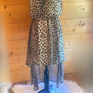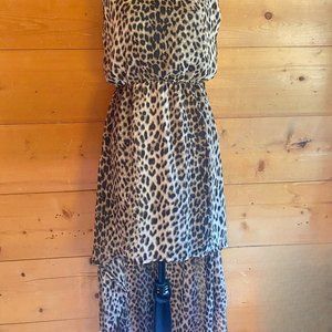 Candy Couture Leopard High Low dress. Short in the front and long in the back, great condition. Elastic waist. Can be worn with a belt. Very flowy and comfortable.