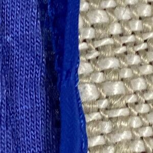 SMALL FLAW- LAST 3 pictures-(zoomed) small pull on the edge of the arm hem- very small- minor- not noticeable