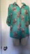 Candy Couture Top, in excellent condition. Beautiful aqua colour with floral and skull pattern, sheer fabric, button up with collar and button tab sleeves. Marked size small