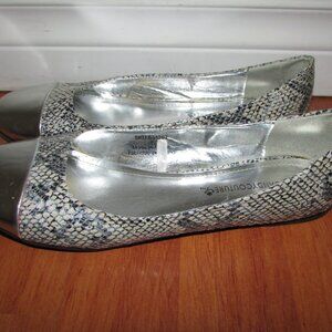 Candy Couture Snakeskin Print Silver Toe Flats - Sz 8