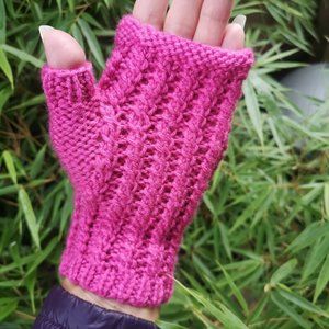 Candy Pink HandKnit Fingerless Texting Gloves Mittens Glovelet Rose Bonbon