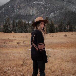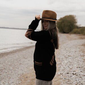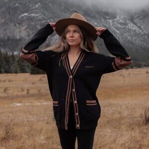 Canoe & Lake: Dockside Knit Cardi - Black with Camel Paddles