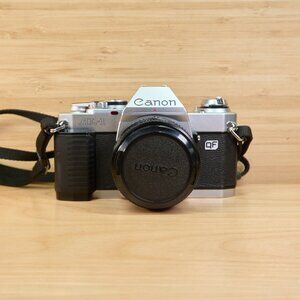 The Canon AL-1 is a classic 35mm SLR film camera designed with focus assist to make manual focusing easier.