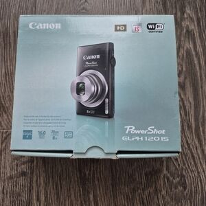 The Canon PowerShot ELPH 120 IS (also known as Canon the IXY 100F in some markets) is a compact stylish digital point-and-shoot camera, featuring a 16MP sensor, 8x optical zoom lens (28-224mm), and HD video recording, known for its slim design, Intelligent IS for shake reduction, Smart AUTO mode, and sometimes Wi-Fi for sharing. It offers easy, automatic shooting for everyday photos and videos, making it popular for casual users and as a basic camera for specific documentation or learning.