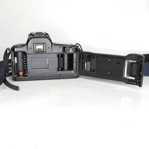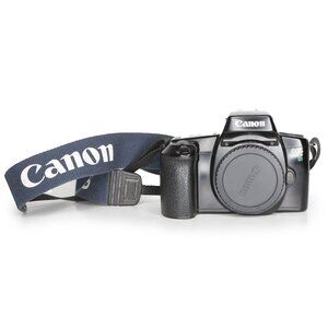 The Canon EOS 1000F SLR camera is a classic 35mm film camera from the 1990s, popular among photography enthusiasts. Known for its retro style, this black camera is perfect for those who appreciate film photography. It is user-friendly, making it great for beginners as well as experienced photographers. The camera offers a range of features, including automatic settings and interchangeable lenses, which help users capture stunning images. This camera represents a nostalgic time in photography and is still loved today.