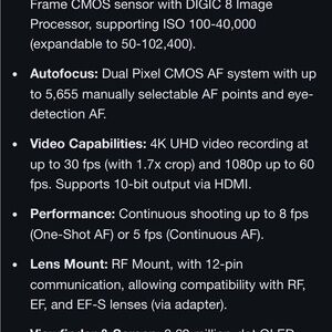 Canon EOS R Full Frame Mirrorless camera in excellent condition.