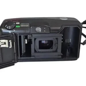 The rear film door does not function properly. It does not close or latch perfectly (see photos). Because of this issue, the camera is being sold as-is.