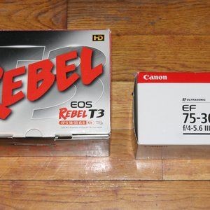Canon Rebel T3 Camera w/ 2x Lens + Focal Tripod + Ring Light = 74-300mm Lens