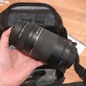 comes with battery, USB cord, charger, 18-55mm lens and 75-300mm lens and camera bag