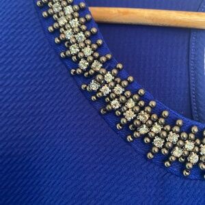 Cantata Dress cobolt blue with rhinestone trim at neck women’s small