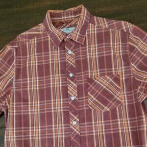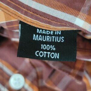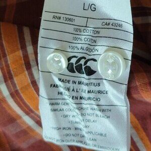 Canterbury of New Zealand Plaid Button Down Shirt Long Sleeve Red Orange White Plaid Size Large Please see photos for measurements Canterbury Rugby Style100% Cotton