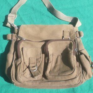 Canvas Chic Hip Military Style Themed Cotton Canvas Shoulder Ultility Bag. In very good to excellent condition with no damages. Clean, stain and odor free. Adjustable strap, multiple pockets. Completely unisex fashion friendly.