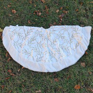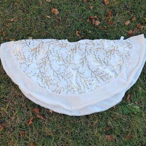 Canvas Faux Fur Tree Skirt Gold and White 48-in