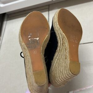 Canvas and Tweed Lace Up Open Toe Wedges | Size 7 Black Scuff on left toe (as seen in photos)