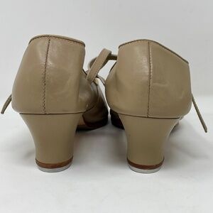 Stylish beige leather Mary Jane tap shoes with a classic design. Perfect for dance enthusiasts. Please see pictures for details and measurements.