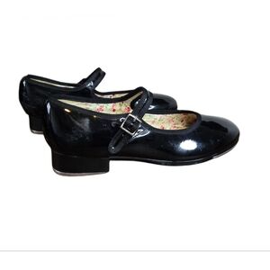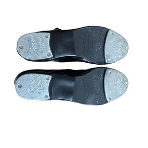 Capezio Tele Tone Tap Dance Shoes Women Size 8 W Black Patent Vegan Leather