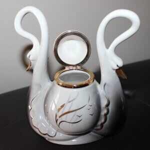 100% official licensed Capodimonte porcelain trinket ornament with lid. Elegant swan handles with gilted beaks. Capodimonte mark on the left swan. May also be used as a jewelry box. For thoughtfulness or just because. Made in Italy.