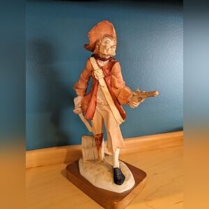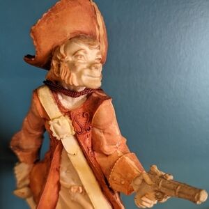 Capodimonte style Handcrafted pirate figurine on wood base. From Italy. 8"x 3.5" x 2.5"