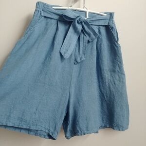 Caposhie 100% linen super high rise wide leg made in Italy blue shorts S…