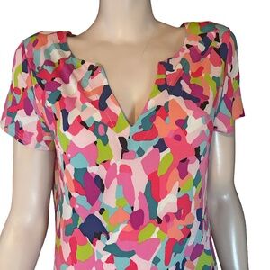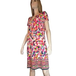 Cappagallo Shift Dress Abstract Print Jersey Knit Colourful Fun V-Neck