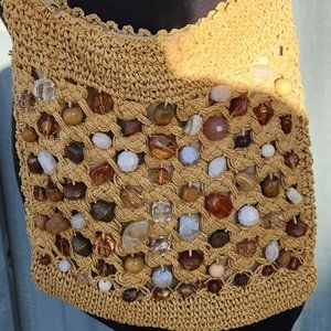 Cappelli Straworld 100% Paper Handbag With Decorative Stones Beads 11" By 11.5"