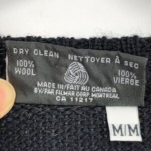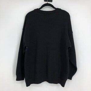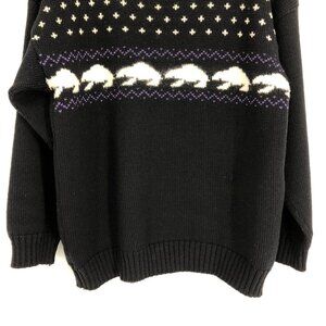 Black knit sweater, 100% wool, with white patterns knit into it - what looks like either polar bears or turtles.
