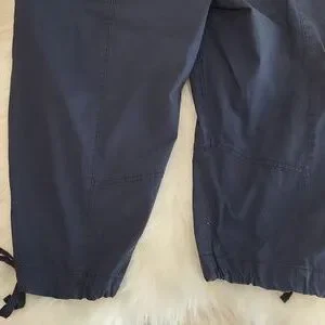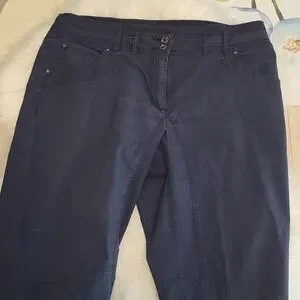 These are navy blue captis with pockets. Size 13 from Reitmans. only worn a couple of times. They're in very good condition. Reasonable offers are always accepted.