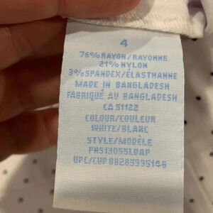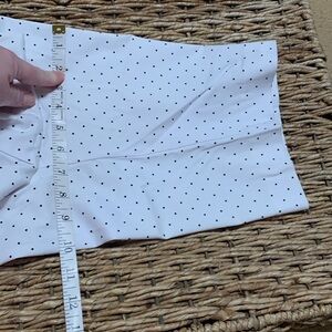 Never been worn - white with small black polka dots. Wide waist band, slip on. Fabric has stretch. Size 4.