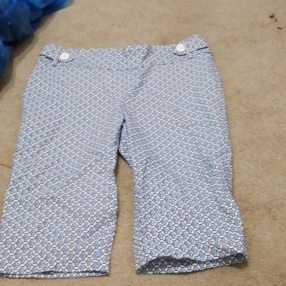 Blue capris with white lines and designing. Never worn