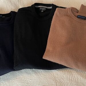 3) Patrick Assaraf Beige/Caramel Wool Cashmere Crewneck Sweater - Size M - 70% Wool, 30% Cashmere - Made in China