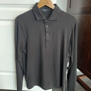 1) Patrick Assaraf Black Long Sleeve Polo - Size M - 95% Pima Cotton, 5% Spandex - Made in Peru