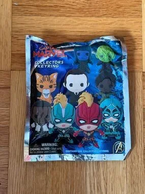 Official Marvel collectors keyring featuring Captain Marvel themed characters. Bright, eye-catching colors. Fun collectible for fans. Ideal for backpacks, keys, or displays.