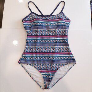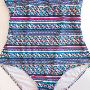 Captiva By Christina Sidari One Piece Swimsuit Strappy Blue Striped Womens XL