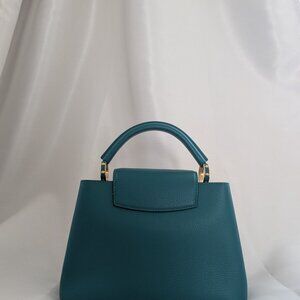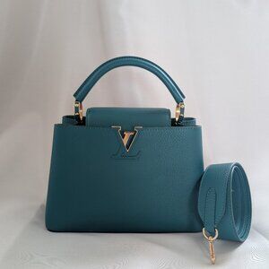 The Capucines BB handbag is made from grained Taurillon leather with tonal details for a sophisticated touch. The BB Capucines size boasts all the iconic details - LV initials, distinctive side rings, and subtle Monogram Flower on the flap.