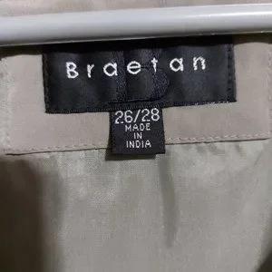 Woman car length jacket size 26/28. Brand , Braetan. Light green with off white collar. front button closure.